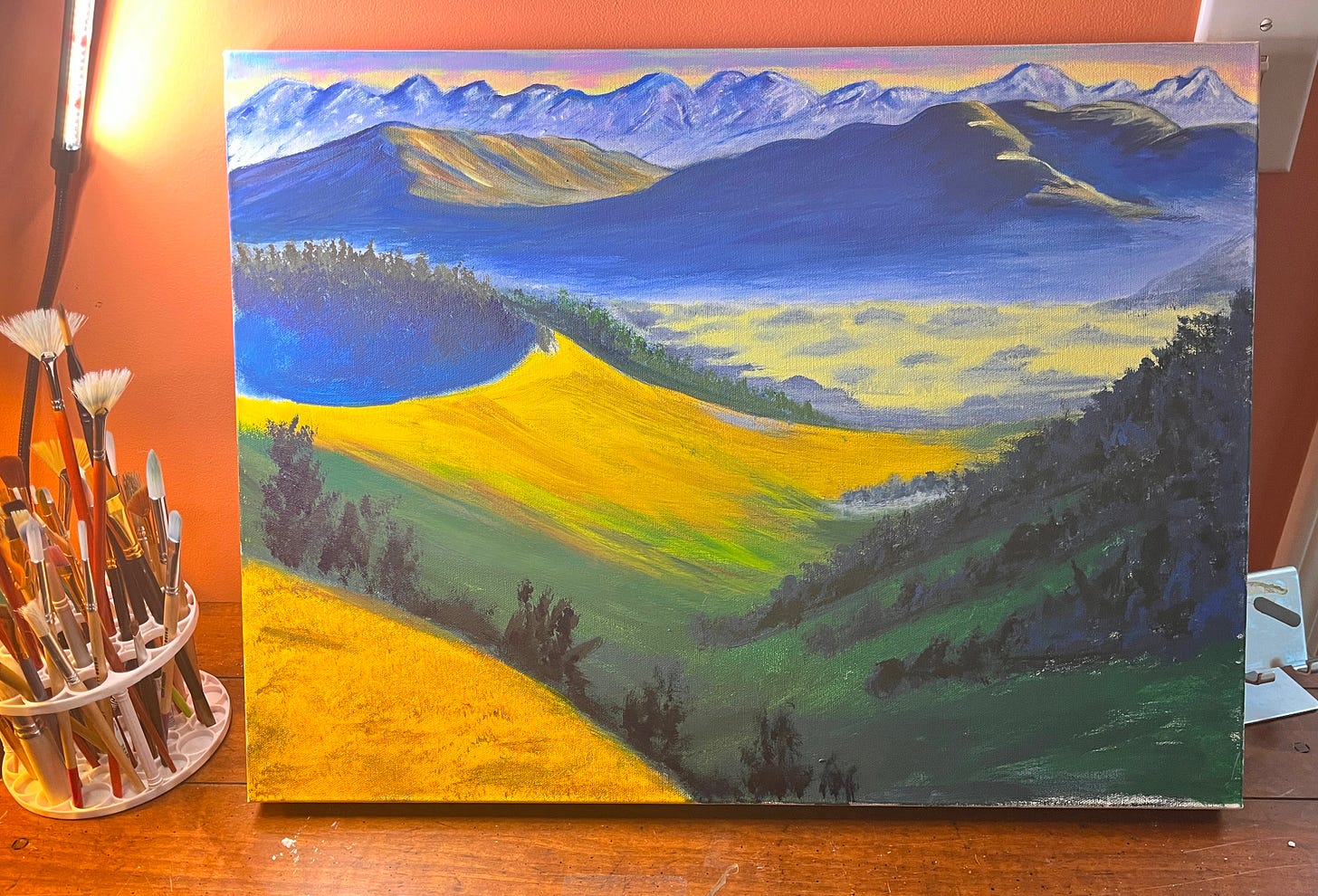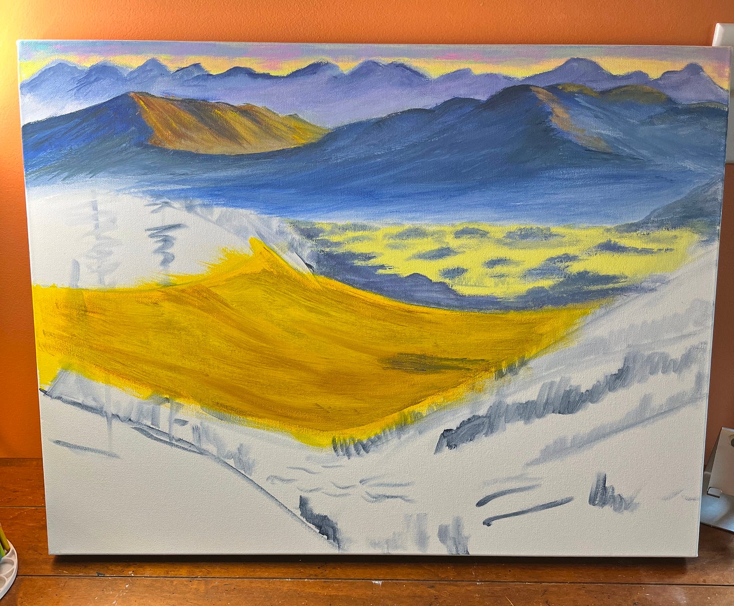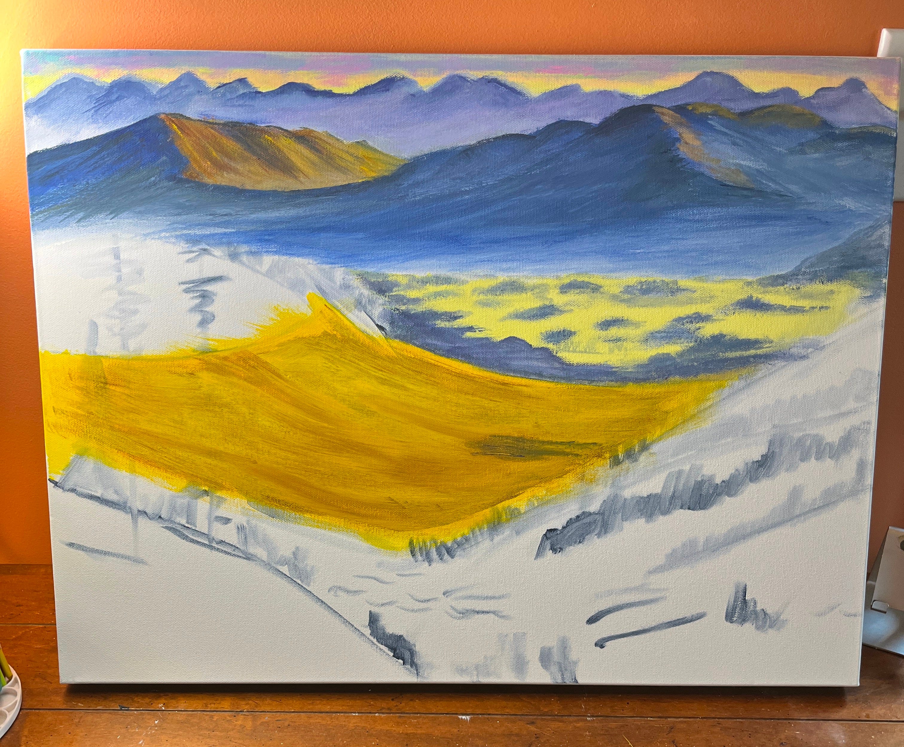 After we hung up, my own words landed differently. I realized I wasn’t overwhelmed by the painting itself; I was overwhelmed by imagining the entire painting at once. I had forgotten that the joy lives in painting the part that’s in front of you, not in carrying the whole thing in your mind. The next day, I sat down again. Three hours passed without effort. The painting shifted, gained depth, gained perspective. There is still so much left to do, and somehow that no longer matters. I love painting.